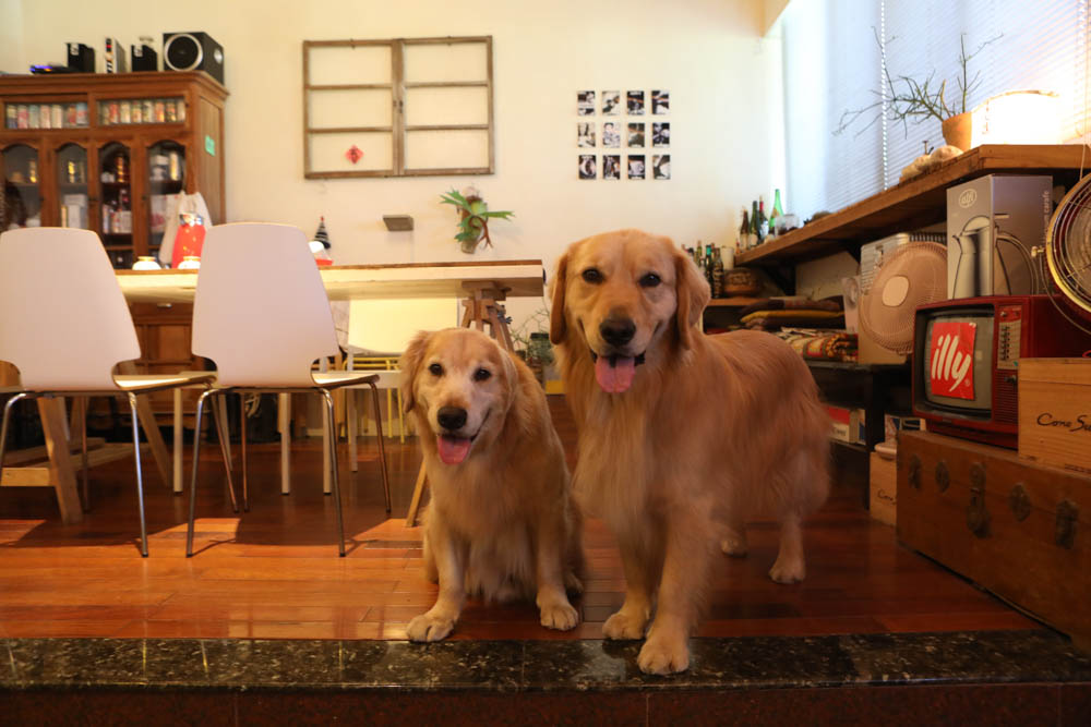 兩犬很自在的先趴下休憩!!老闆說因為包場的關係,他這天也不接其他組客人了,就讓狗狗自在走動,只要不跑到廚房就好!!