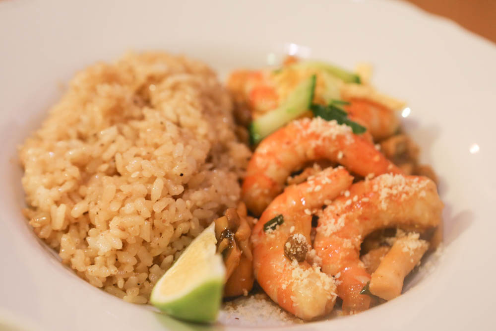 鮮蝦菌菇拌飯!!鮮甜的蝦搭配風味絕佳的菌菇拌飯,淋上檸檬超正點!!