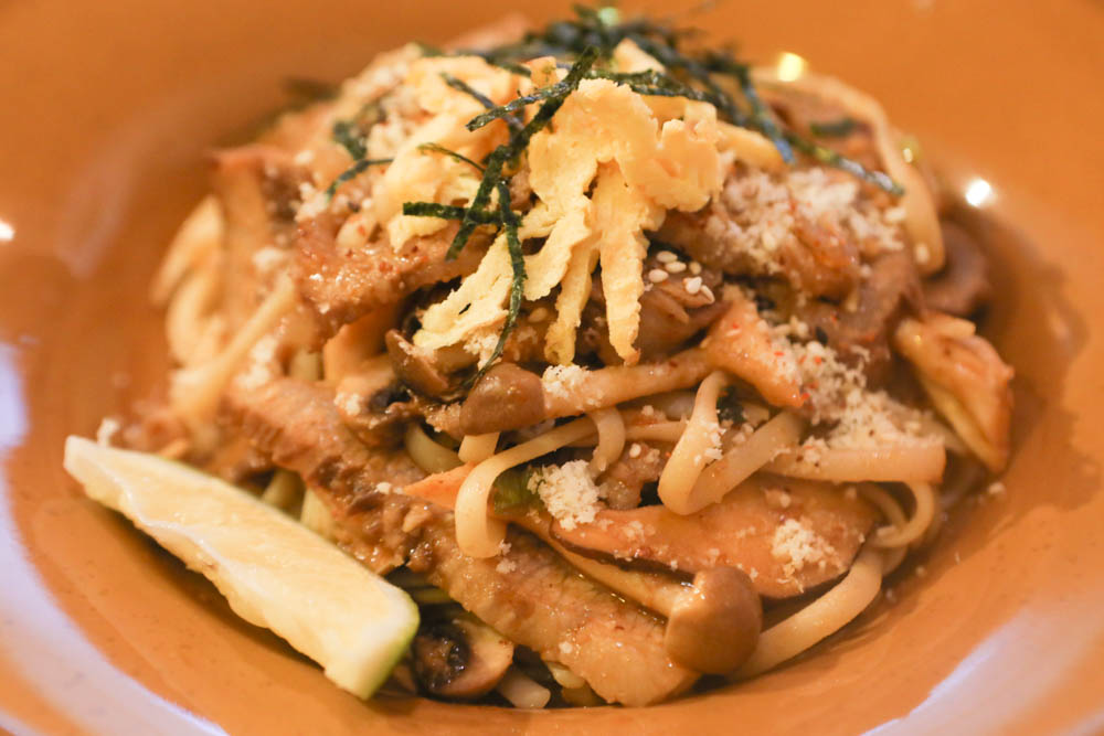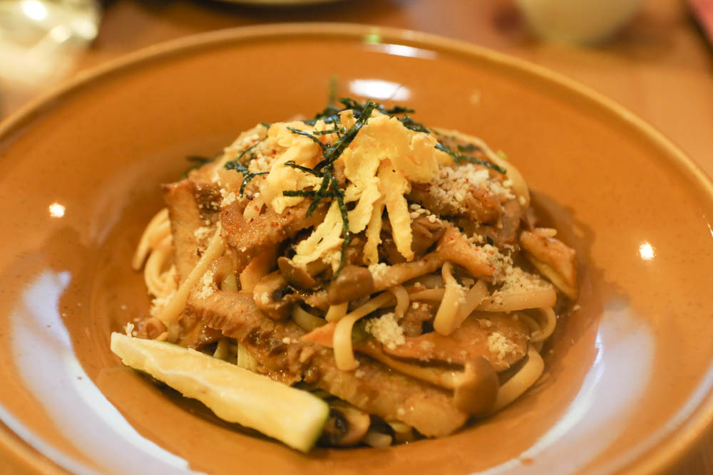 松阪豬義大利麵,滿滿的香煎松阪豬、菇類、蛋絲、Q彈義大利麵,一整個顛覆我的味蕾,獨特香脆、非常澎湃